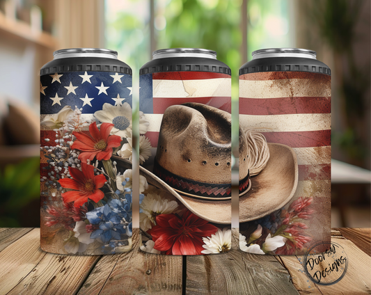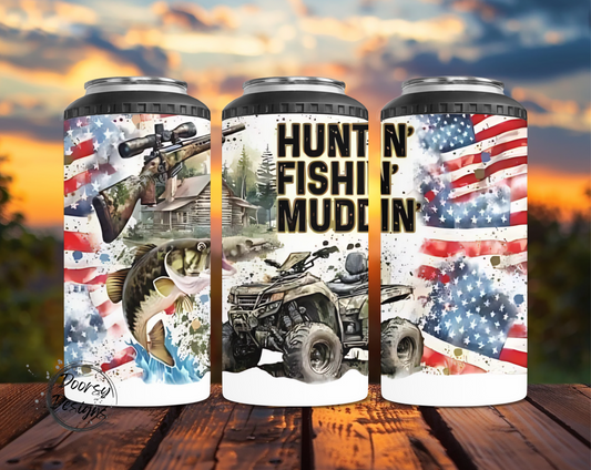 Huntin' Fishin' Muddin' US Flag Can Cooler