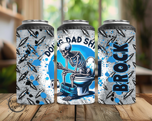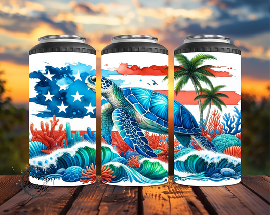 Designs are printed and heat-baked onto the tumbler with sublimation ink. The image is permanently dyed. It can fade slightly with extreme exposer the direct sunlight for prolonged periods of time. Names can be added to any of these Can Coolers for free!