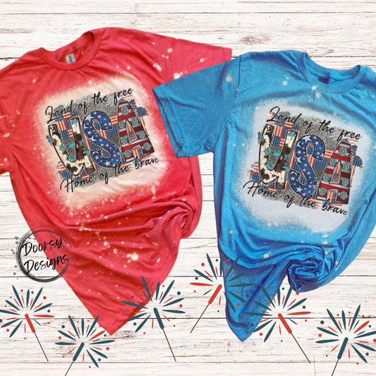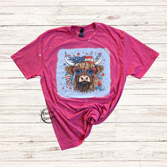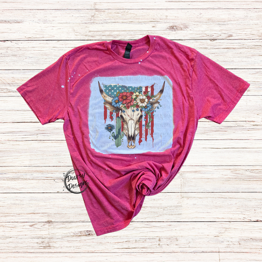 US Flag & Long Horn Skull Bleached 4th of July Shirt