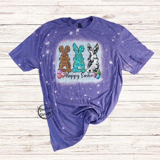 X-LARGE RTS Cow Print Stencil Cowhide Bleached T-Shirt-with Turquoise Cow Print