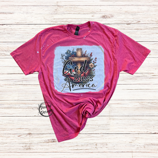 Wildflowers God Bless America Bleached 4th of July Shirt
