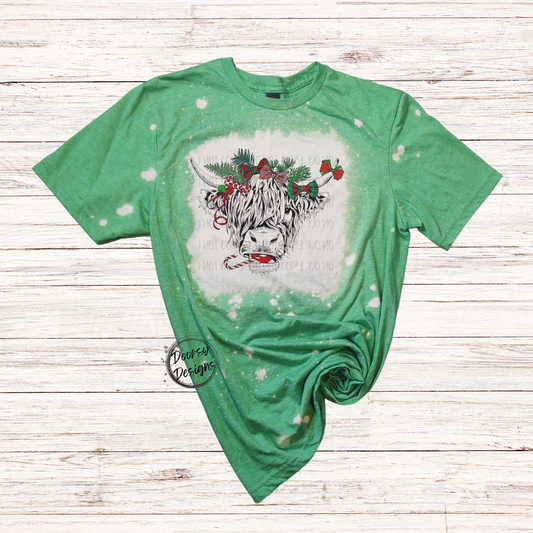 Candy Cane Highlander Christmas Cow Bleached Shirt