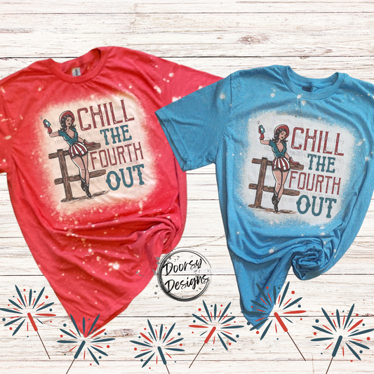 Chill the 4th Out Bleached 4th of July Shirt with Cowgirl
