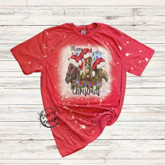 Merry Christmas Horses Bleached Xmas Shirt with Christmas Lights