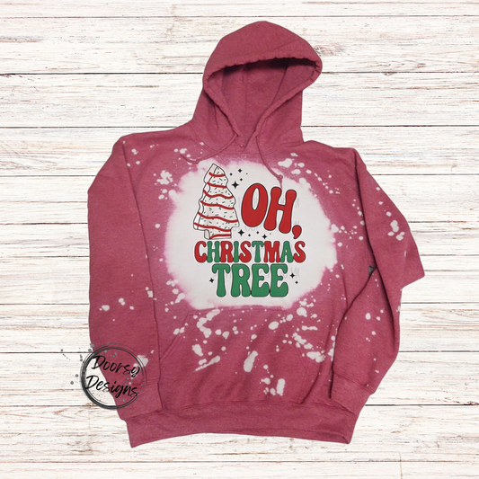 OH Christmas Tree Bleached Christmas Hooded Sweatshirt with Xmas Tree Cake