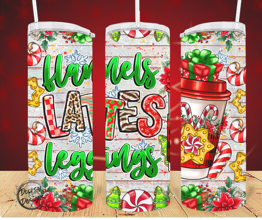 Flannels Lattes Leggings Christmas 20oz Sublimation Tumbler Cup