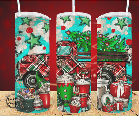 Christmas Tree Truck and Elf Coffee 20oz Sublimation Tumbler Cup