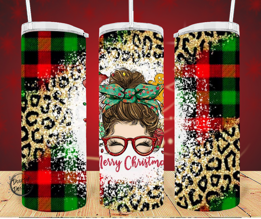 Messy Bun Merry Christmas 20oz Sublimation Tumbler Cup