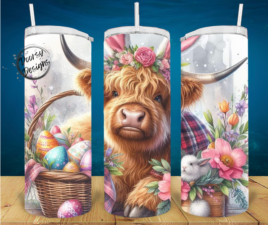Highlander Cow with Easter Basket 20oz Tumbler Sublimation Cup