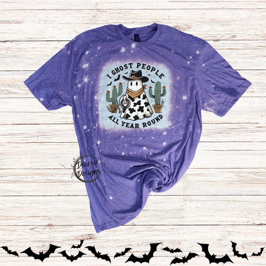 Coquette Ghosts with Pumpkins Bleached Halloween Shirt