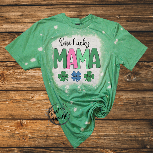 One Lucky MAMA St. Patrick's Day CUSTOM Bleached T-Shirt Collection