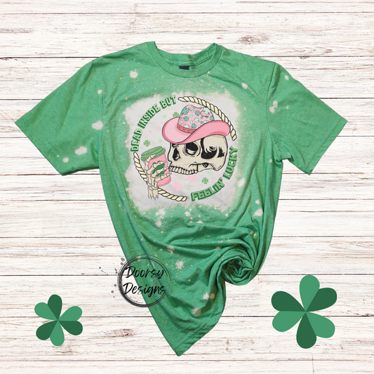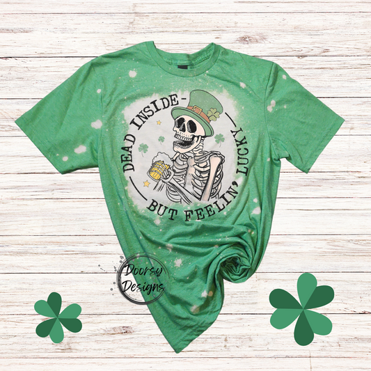 Dead Inside but Feeling Lucky St Patrick's Day Shirt with Skeleton