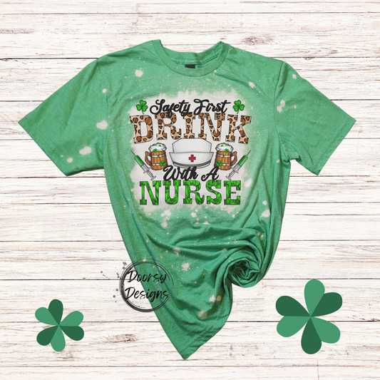 Safety First Drink with a NURSE St Patrick's Day Shirt
