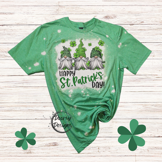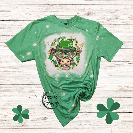 Bleached Happy St Patrick's Day Shirt with Leopard Print and Clover