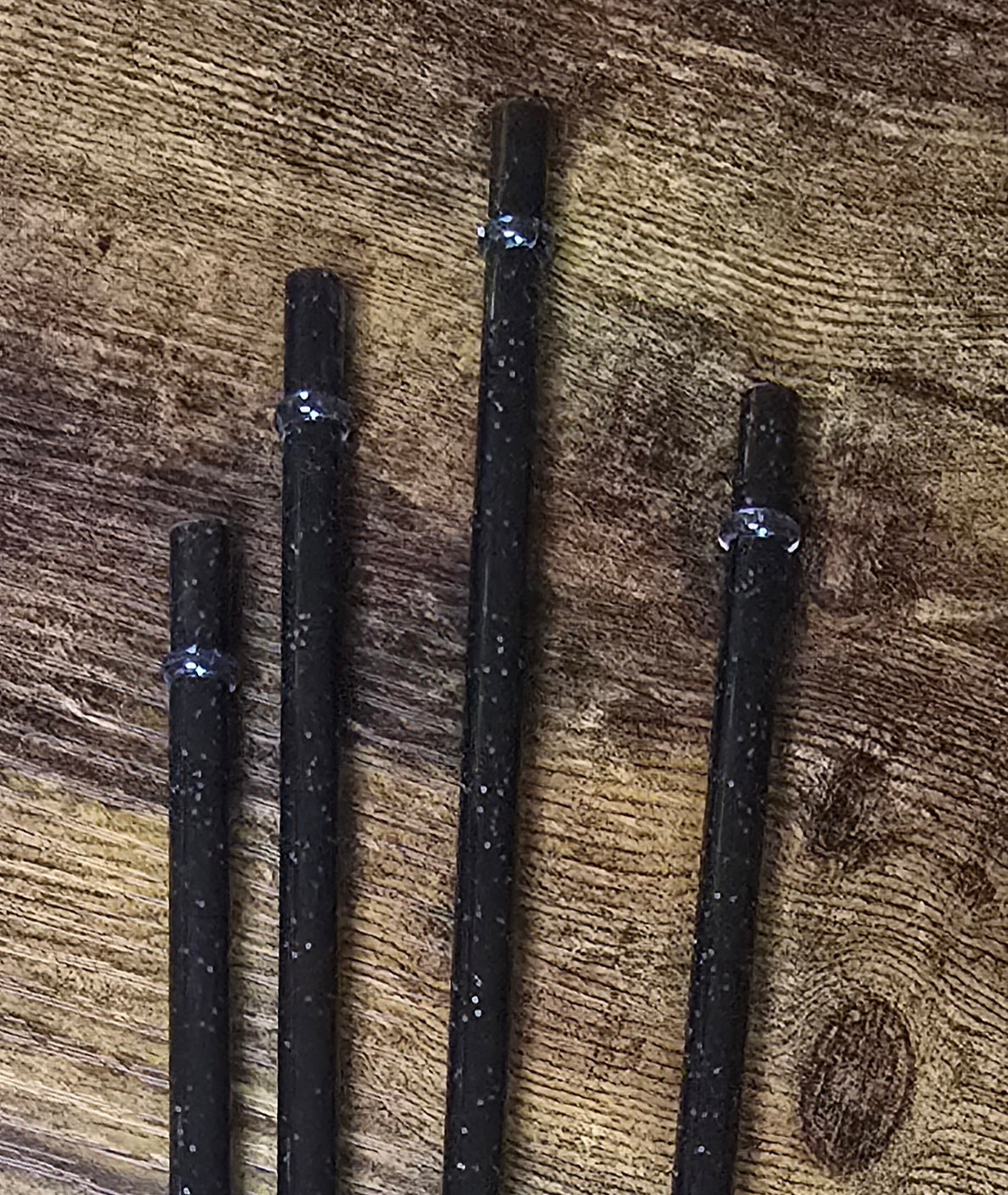 These are Black with Silver Glitter sparkles. They are 13 inches in length. The perfect size for the 40oz Tumblers in my store. They fit great in the stray hole of the lid.