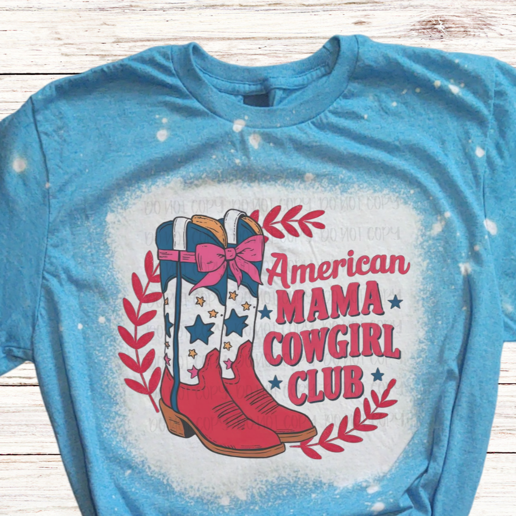 American MAMA Cowgirl Club Bleached 4th of July Shirt