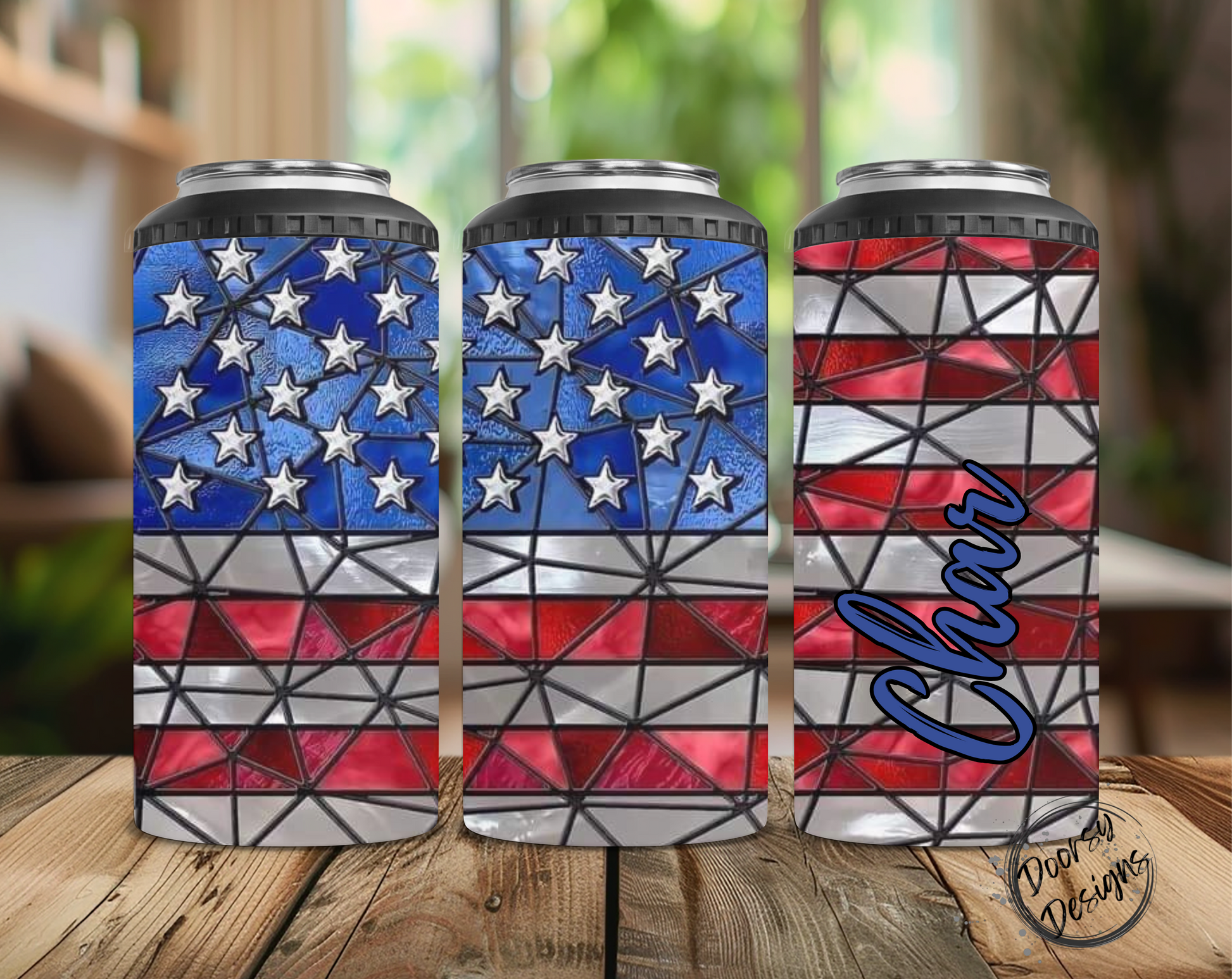 Stained Glass US Flag Can Cooler